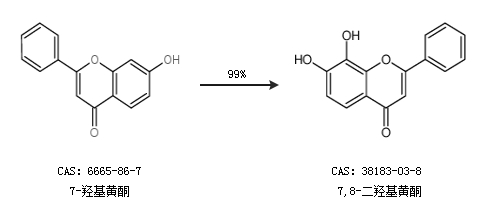 1.通過7-羥基黃酮合成7,8-二羥基黃酮,收率約99%;