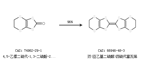 2.通過4,5-乙撐二硫代-1,3-二硫酚-2-酮合成雙(亞乙基二硫醇)四硫代富瓦烯,收率約96%;