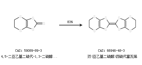 1.通過4,5-二亞乙基二硫代-1,3-二硫醇-2-硫酮合成雙(亞乙基二硫醇)四硫代富瓦烯,收率約83%;