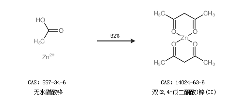 2.通過(guò)無(wú)水醋酸鋅合成雙(2,4-戊二酮酸)鋅(II),收率約62%;