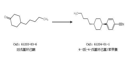 1.通過對(duì)戊基環(huán)己酮合成4-(反-4-戊基環(huán)己基)苯甲腈