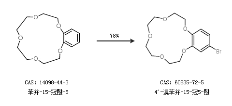 1.通過苯并-15-冠醚-5合成4''-溴苯并-15-冠5-醚,收率約78%;