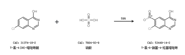 2.通過7-氯-4(3H)-喹唑啉酮和硫酸合成7-氯-6-硝基-4-羥基喹唑啉,收率約59%;