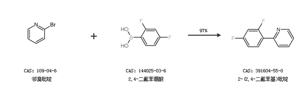 1.通過鄰溴吡啶和2,4-二氟苯硼酸合成2-(2,4-二氟苯基)吡啶,收率約97%;