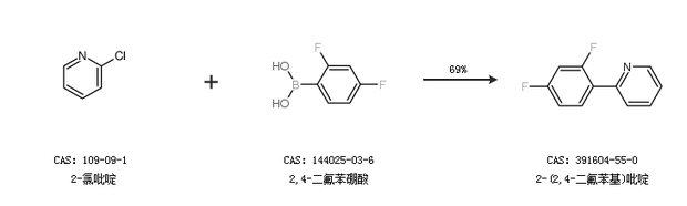 2.通過2-氯吡啶和2,4-二氟苯硼酸合成2-(2,4-二氟苯基)吡啶,收率約69%;