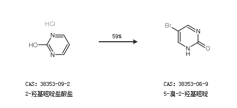 2.通過2-羥基嘧啶鹽酸鹽合成5-溴-2-羥基嘧啶,收率約59%;