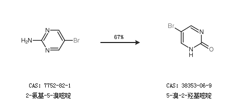 1.通過2-氨基-5-溴嘧啶合成5-溴-2-羥基嘧啶,收率約67%;