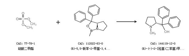 1.通過硫酸二甲酯和(R)-5,5-聯(lián)苯-2-甲基-3,4-丙醇-1,3,2-惡唑硼烷合成(R)-(-)-2-[羥基(二苯基)甲基]-1-甲基吡咯烷