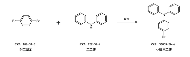 2.通過(guò)對(duì)二溴苯和二苯胺合成4-溴三苯胺,收率約63%;