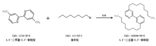 1.通過4,4''-二甲基-2,2''-聯吡啶和溴辛烷合成4,4''-二壬基-2,2''-聯吡啶,收率約43%;