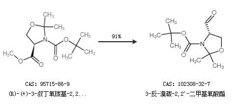 2.通過(R)-(+)-3-叔丁氧羰基-2,2-二甲基-4-噁唑烷羧酸甲合成3-反-溴碳-2,2''-二甲基氧酸酯,收率約91%;