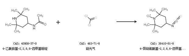 1.通過4-乙酰胺基-2,2,6,6-四甲基哌啶和硫光氣合成4-異硫氰酰基-2,2,6,6-四甲基哌啶1-氧基自由基