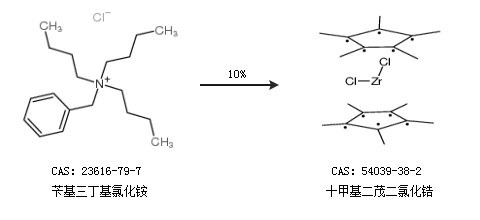 1.通過芐基三丁基氯化銨合成十甲基二茂二氯化鋯,收率約10%;