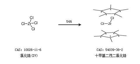 2.通過氯化鋯(IV)合成十甲基二茂二氯化鋯,收率約54%;