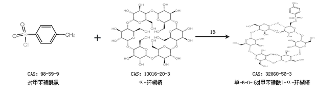 2.通過對甲苯磺酰氯和α-環(huán)糊精合成單-6-O-(對甲苯磺酰)-α-環(huán)糊精,收率約1%;