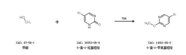 2.通過甲醇和2,5-二溴嘧啶合成5-溴-2-甲氧基嘧啶,收率約81%;