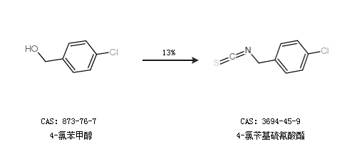 1.通過(guò)4-氯苯甲醇合成4-氯芐基硫氰酸酯,收率約13%;