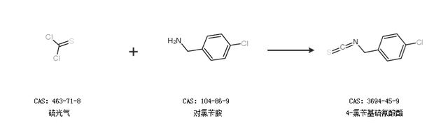2.通過(guò)硫光氣和對(duì)氯芐胺合成4-氯芐基硫氰酸酯
