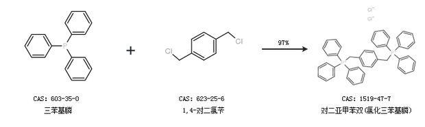 1.通過(guò)三苯基膦和1,4-對(duì)二氯芐合成對(duì)二亞甲苯雙(氯化三苯基膦),收率約97%;