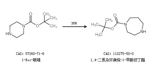 2.通過1-Boc-哌嗪合成1,4-二氮雜環(huán)庚烷-1-甲酸叔丁酯,收率約38%;