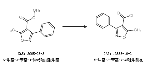 2.通過5-甲基-3-苯基-4-異噁唑羧酸甲酯合成5-甲基-3-苯基-4-異唑甲酰氯