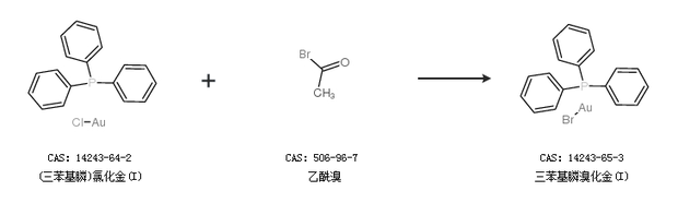 1.通過(三苯基膦)氯化金(I)和乙酰溴合成三苯基膦溴化金(I)