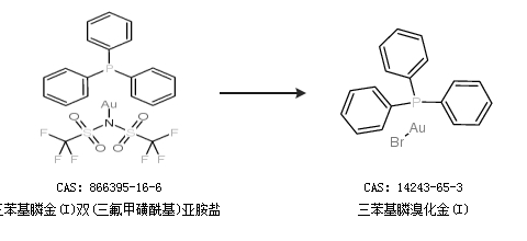 2.通過三苯基膦金(I)雙(三氟甲磺;)亞胺鹽合成三苯基膦溴化金(I)