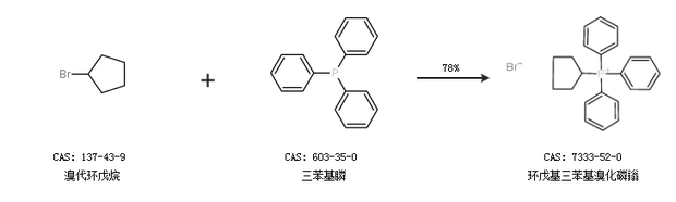 1.通過溴代環(huán)戊烷和三苯基膦合成環(huán)戊基三苯基溴化磷鎓,收率約78%;