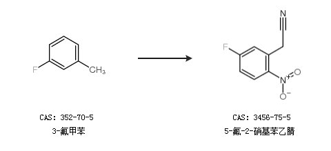 2.通過3-氟甲苯合成5-氟-2-硝基苯乙腈