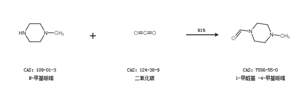 2.通過N-甲基哌嗪和二氧化碳合成1-甲醛基 -4-甲基哌嗪,收率約91%;
