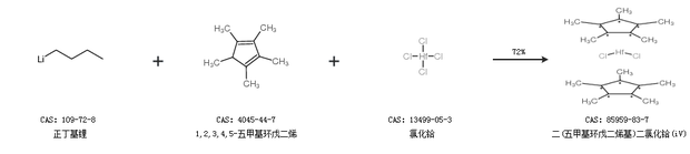 2.通過正丁基鋰、1,2,3,4,5-五甲基環(huán)戊二烯和氯化鉿合成二(五甲基環(huán)戊二烯基)二氯化鉿(iV),收率約72%;