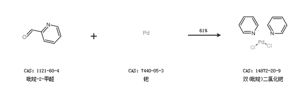 1.通過吡啶-2-甲醛和鈀合成雙(吡啶)二氯化鈀,收率約61%;